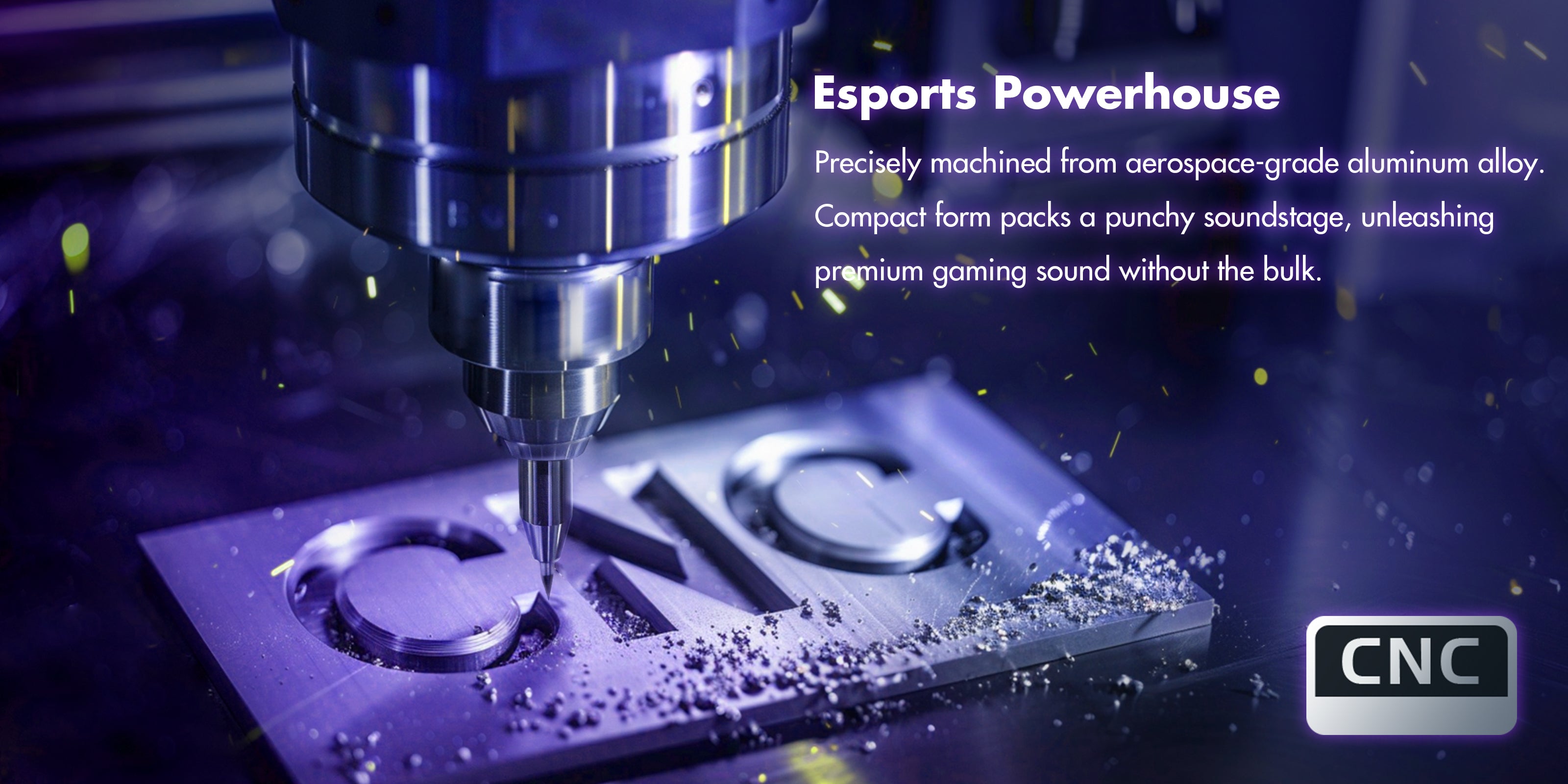 Precisely machined from aerospace-grade aluminum alloy. Compact form packs a punchy soundstage, unleashing premium gaming sound without the bulk.
