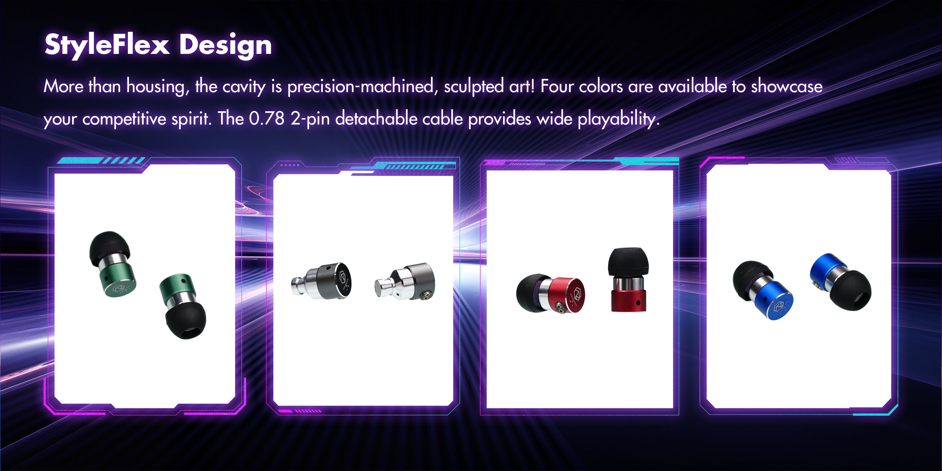 More than housing, the cavity is precision-machined, sculpted art! Four colors are available to showcase your competitive spirit. The 0.78 2-pin detachable cable provides wide playability.